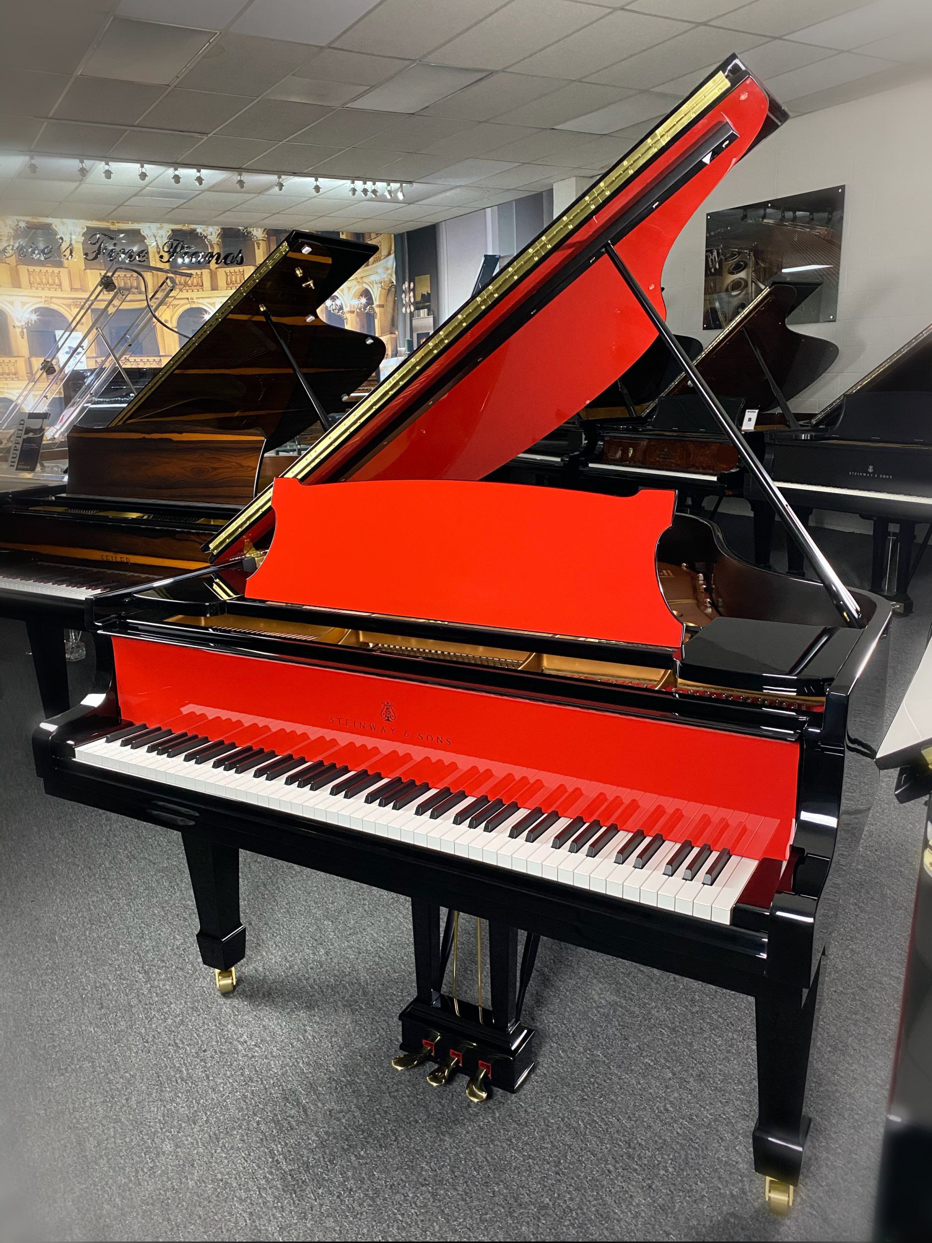 STEINWAY M SOLD* COLLECTOR'S ITEM* RED ON BLACK
